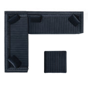 Contemporary Vertical Channel Tufted Velvet Sectional Sofa For Living Room Apartment With Ottoman And 4 Pillows