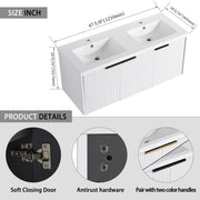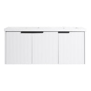 Contemporary Wall Mounted Bathroom Vanity With Resin Double Sink & Soft Close Doors - White