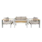 Cora - Outdoor Patio Aluminum 4 Pieces Chat Set - Beige / Natural / Silver
