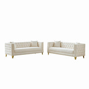 3 And 3 Seater Deep Seat Sofa With Button Nailhead And Square Arm Design - Beige