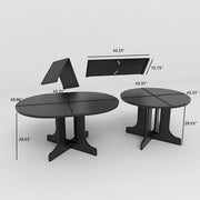 Dining Table For Farmhouse Kitchen Expandable Oval Table Top With Removable Leaf Trestle X Shaped Base - Black