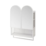 Double Arched Mirror Cabinet With 2 Doors, Wall Cabinet Featuring Adjustable Shelves And Towel Rack - White