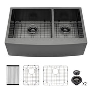 Double Bowl Farmhouse Sink, Stainless Steel Apron Front 16 Gauge - Gunmetal Black