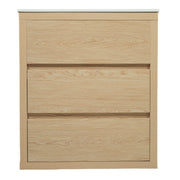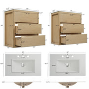 Double Sinks Bathroom Vanity Set With 2 Basins, Full Extension Soft Close Drawers - Natural Wood