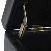 - Features large interior storage space with child safety hinge to prevent lid slamming