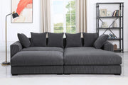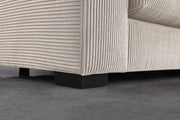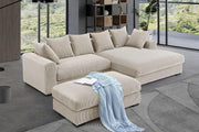 Introducing our Sectional Set, seamlessly fitting into your living room's layout. Accompanied by a versatile ottoman, it serves as both a footrest and extra seating. Supported by sleek black plastic legs, the sectional exudes stability and modern flair. Crafted from soft corduroy, it offers a sumptuous texture that's both inviting and easy to maintain. With six complementary toss pillows, this sectional not only enhances visual appeal but also ensures customizable comfort and support, making it the perfect setting for gatherings, movie nights, or unwinding after a long day. The ottoman adds versatility, allowing for relaxation or a convenient surface for books, snacks, or drinks.