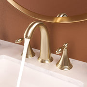 2 Handle Widespread Bathroom Faucet With Pop Up Drain And Water Supply Lines - Gold