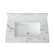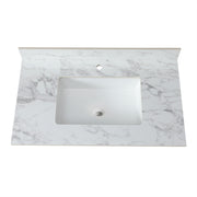 Sintered Stone Bathroom Vanity Top With Rectangular Undermount Ceramic Sink And Backsplash, Single Faucet Hole - Carrara White