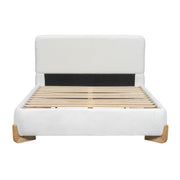 Elegant Boucle Upholstered Bed With Solid Wood Feet