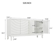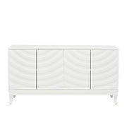 Elegant Sideboard With Sophisticated Wavy Pattern Doors And Arched Groove Design In A Stylish 4 Door Layout, Adjustable For Study, Entryway And Living Room - White