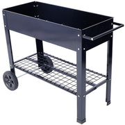 Elevated Mobile Raised Ergonomic Metal Planter Garden Bed With Wheels Powder Coated Steel - Black