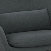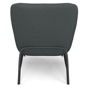 - Features lumbar pillow, deep comfortable cushioned seat, curved back and sides, black powder coated metal base and legs