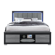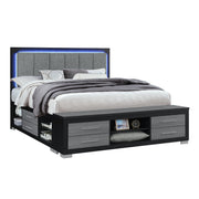 Emilia - Queen Bed With Bookcase Headboard And Storage - Black / Gray