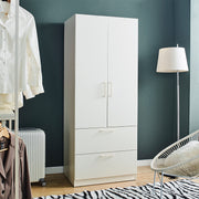 Emma - 2 Door Wood Closet With 2 Drawers And Hanging Bars - White