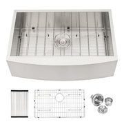 33" Farmhouse Sink Stainless Steel 16 Gauge Apron Front Kitchen Sink - Brushed Nickel