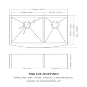 Sink With Double Bowl, 60 / 40 In 36" X 20" X 9" Apron Front Kitchen Sink, 16 Gauge T304 Construction - Brushed Nickel