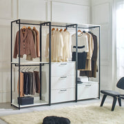 Fiona - Freestanding Walk In Wood Closet System, Metal Frame Melamine - White