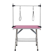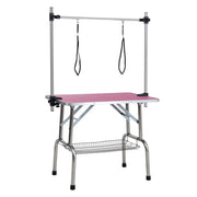 Folding Dog Pet Grooming Table, Stainless Steel Frame Rubber Mat On Board With Adjustable Arm And Clamps Pet Dog Cat Grooming Table - Pink