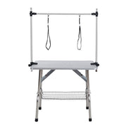 Folding Dog Pet Grooming Table Stainless Steel Frame Rubber Mat On Board With Adjustable Arm And Clamps Pet Dog Cat Grooming Table