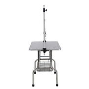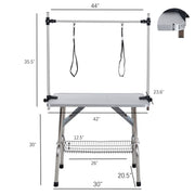 Folding Dog Pet Grooming Table Stainless Steel Frame Rubber Mat On Board With Adjustable Arm And Clamps, Pet Dog Cat Grooming Table - Silver Gray