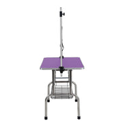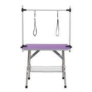 Folding Dog Pet Grooming Table Stainless Steel Frame Rubber Mat On Board With Adjustable Arm And Clamps Pet Dog, Cat Grooming Table - Purple