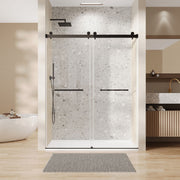 Frameless Double Sliding Soft Close Bathtub Shower Door, 5 / 16" Clear Nano Coated Tempered Glass And 304 Stainless Steel Handle - Matte Black