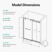 Frameless Double Sliding Soft-Close Shower Door, 3 / 8" (10Mm) Thick SGCC Tempered Glass Door, Matte - Black