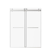 Frameless Double Sliding Soft-Close Shower Door, 3 / 8" Thick SGCC Tempered Glass Door - Brushed Nickel