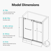 Frameless Double Sliding Soft-Close Shower Door In Matte, 3 / 8" (10Mm) Thick SGCC Tempered Glass Door - Black