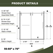 - Humanized Design: Adjustable width from 56" to 60" by cutting guide, suitable for post-finished walls. Dimensions: 60" width and 76" height.