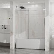 Frameless Bathtub Door, Sleek Silent Sliding Glass Door, Tempered Glass - Chrome