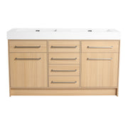 Original 60" Freestanding Bathroom Vanity With Double Resin Sink Soft Closing Doors & Drawers Plywood - Oak
