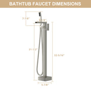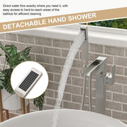 Freestanding Bathtub Faucet Waterfall Tub Filler Floor Mount Solid Brass With Hand Shower - Brushed Nickel