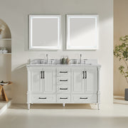 Freestanding Double Bathroom Vanity With Extra Black Handles - White