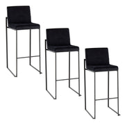 Fuji - Contemporary High Back Barstool (Set of 3) - Black - Velvet