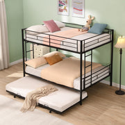 Full Over Full Modern Metal Bunk Bed With Trundle - Black
