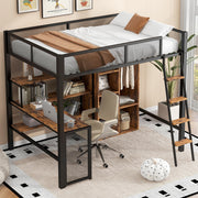 Full Size Loft Bed With Built In Desk, Wardrobe, And Shelves - Black