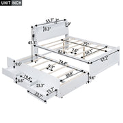 Full Size Platform Bed With Storage LED Headboard, Twin Trundle And 3 Drawers - White