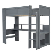 Twin Size Gaming Loft Bed With Desk, Multi Storage Shelves, LED And Charging Station - Dark Gray