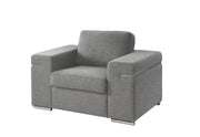 Glam up your living room with the Gianna Collection! Crafted from fine wood and quality fabrics, this chair features oversized arms with chrome metal inserts on the side. The matching chrome legs adds a touch of elegance while oversized seat construction allows for more space and comfort for each seat. Entertain your guests and family in comfort and style. Also available in 3-seater sofa and 2-seater loveseat.