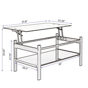 Glass Lift Top Coffee Table, Modern Simple 2-Layer Tempered Glass Coffee Table For Living Room - Black