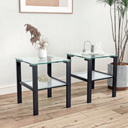 Glass Two Layer Tea Table, Small Round Table, Bedroom Corner Table, Living Room Side Table, Transparent (Set of 2) - Black