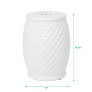 Glazed Ceramic Drum Stool Indoor / Outdoor Side Table Ceramic - White