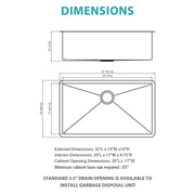 Gold Finish Undermount Stainless Steel Kitchen Sink 32" X 19" 16 Gauge Deep Single Bowl