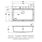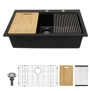 Quartz Kitchen Sink 33" X 22" Granite Composite Drop In Workstation - Black
