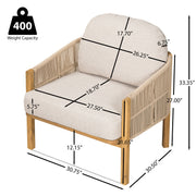 Grotta - Outdoor Wood Club Chair Set Rope With Cushion Frame - Teak / Beige