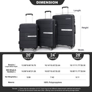 Hardshell Suitcase Double Spinner Wheels Pp Luggage Sets Lightweight Durable Suitcase With Tsa Lock, 3 Piece Set (20/24/28) - Black