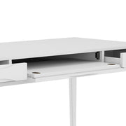 - Features a flip down pull-out keyboard tray and two (2) notched handle drawers with metal drawer glides