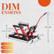 Heavy Duty 1500Lbs Hydraulic Motorcycle Lift Jack With Wheels And Handle - Red / Black