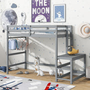 Twin Size High Loft Bed With Ladder Landing Platform, Ladders, Guardrails - Gray